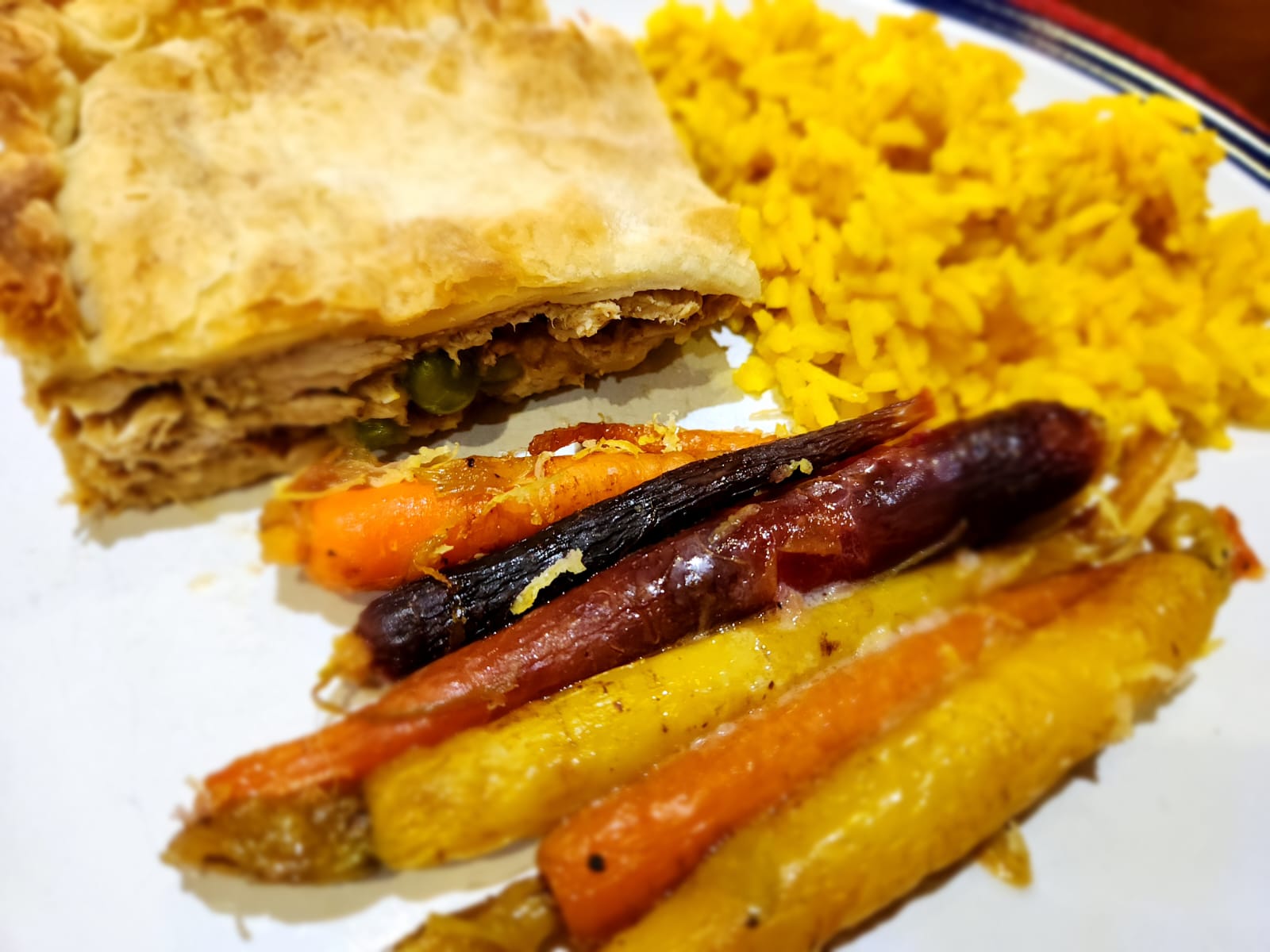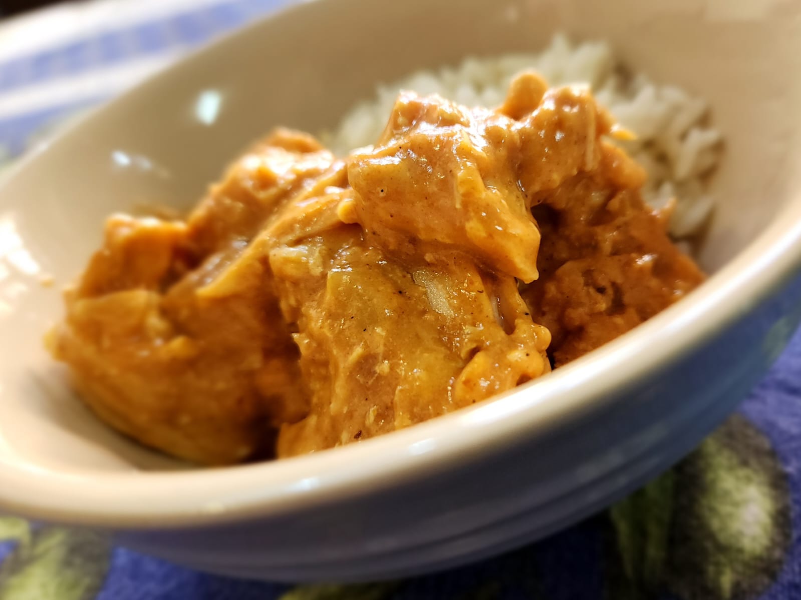 with rice is a not to be missed meal. The chicken is prepared in a thick creamy yogurt sauce with exploding curry and masala flavours, just waiting to reach the tongue. We combine this sauce with a dash of carrots, absorbing the mild curry flavours and rounding off this complete meal.